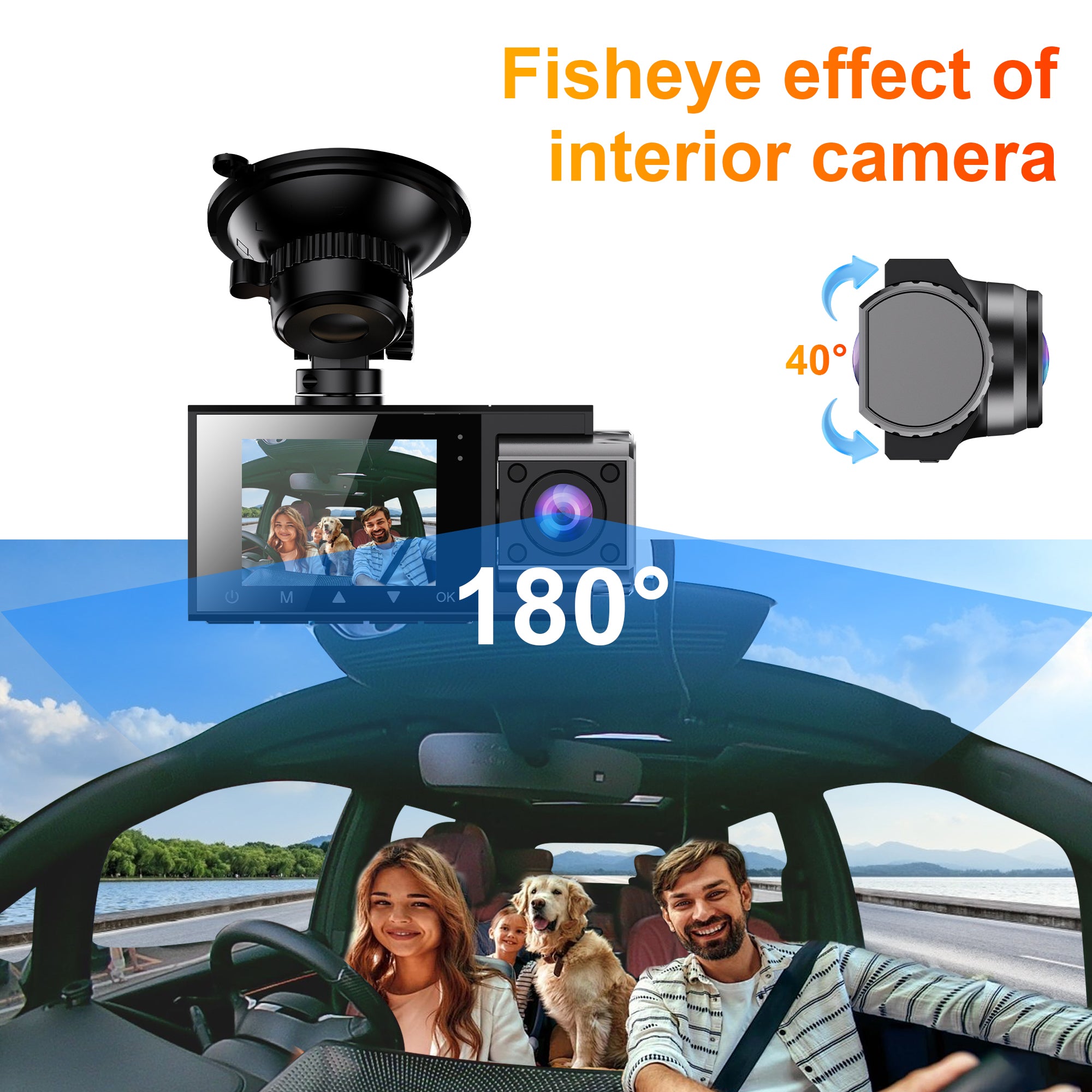 The 180° ultra-wide fisheye cabin lens captures the entire interior of the vehicle, ensuring driver safety, passenger monitoring, and clear evidence in case of disputes.