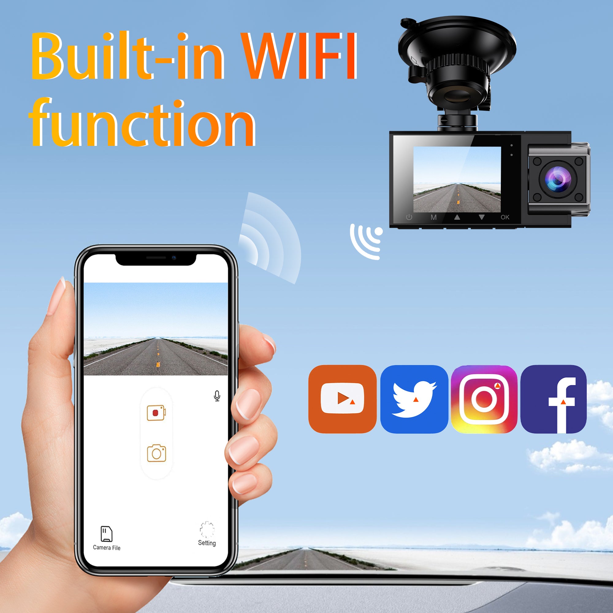 Connect your dashcam to your smartphone using WiFi and manage recordings through the Viidure mobile app—view, download, lock, and share videos without a computer or removing the SD card.